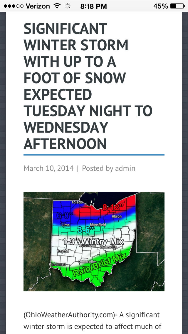 A storm rolled through today dumping six inches of snow and white out conditions most of the day. There was a 40 car pile-up on the local highway.